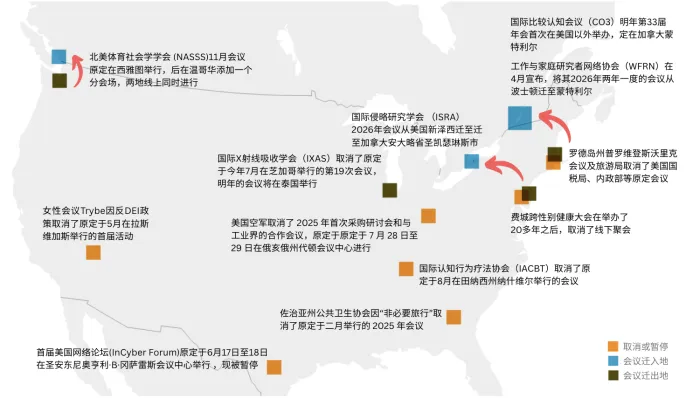 国际认知行为疗法协会(IACBT)取消了原定于8月在田纳西的会议,直言美国削减联邦经费与国际关系决策让会议无法继续筹办。首届美国网络论坛InCyber Forum也因“政策与经济环境不确定”而被叫停。
