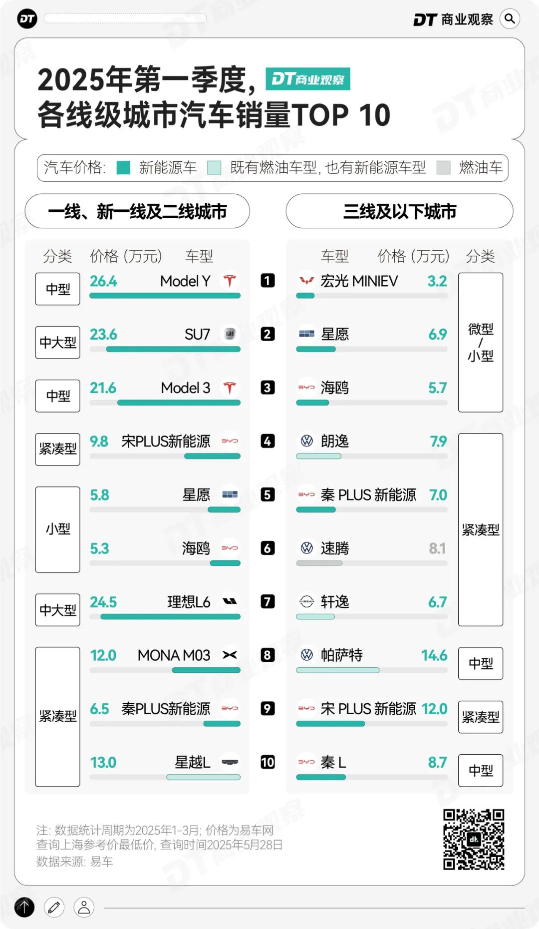 这股来自下沉市场的强劲购买力,正在重塑行业版图。我们不禁好奇,哪些新能源车型在下沉市场热销?是谁在买单?他们的购车偏好,又与一二线城市消费者有何不同?