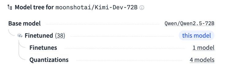 然而,当开发者们深入了解这个模型时,发现它明确标注了:Base model:Qwen/Qwen2.5-72B。这引发了一些人的疑问,Kimi-Dev的优异表现,究竟是创新还是“套壳”?