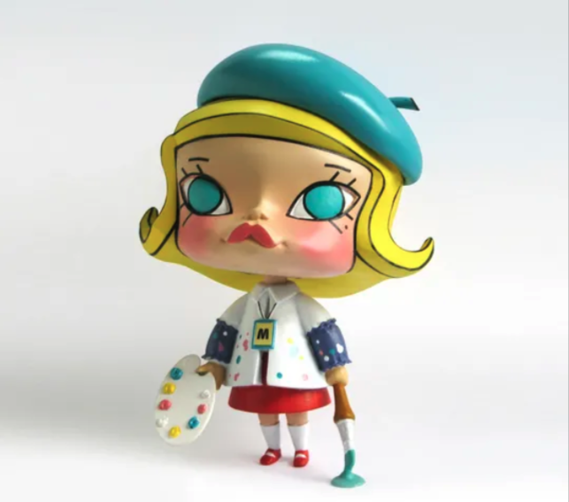 本期博物馆是诞生于2007年的“初代MOLLY”的形象——小画家茉莉,她的创造者是中国香港知名设计师Kenny Wong。MOLLY的灵感源自Kenny参加的某次慈善活动。其中有个小姑娘,扑闪着大大的蓝眼睛,金黄色短发微卷,作画时自信地嘟着嘴巴,专注的神情让Kenny印象非常深刻。当Kenny问到她的名字时,她有些小骄傲地大声回答道:“My name is Molly!(我叫茉莉)”