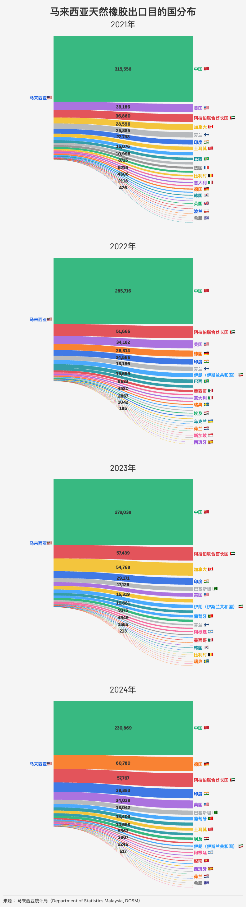 反之,尽管中国依旧是马来西亚橡胶出口的第一大市场,其主导地位也在悄然发生变化。