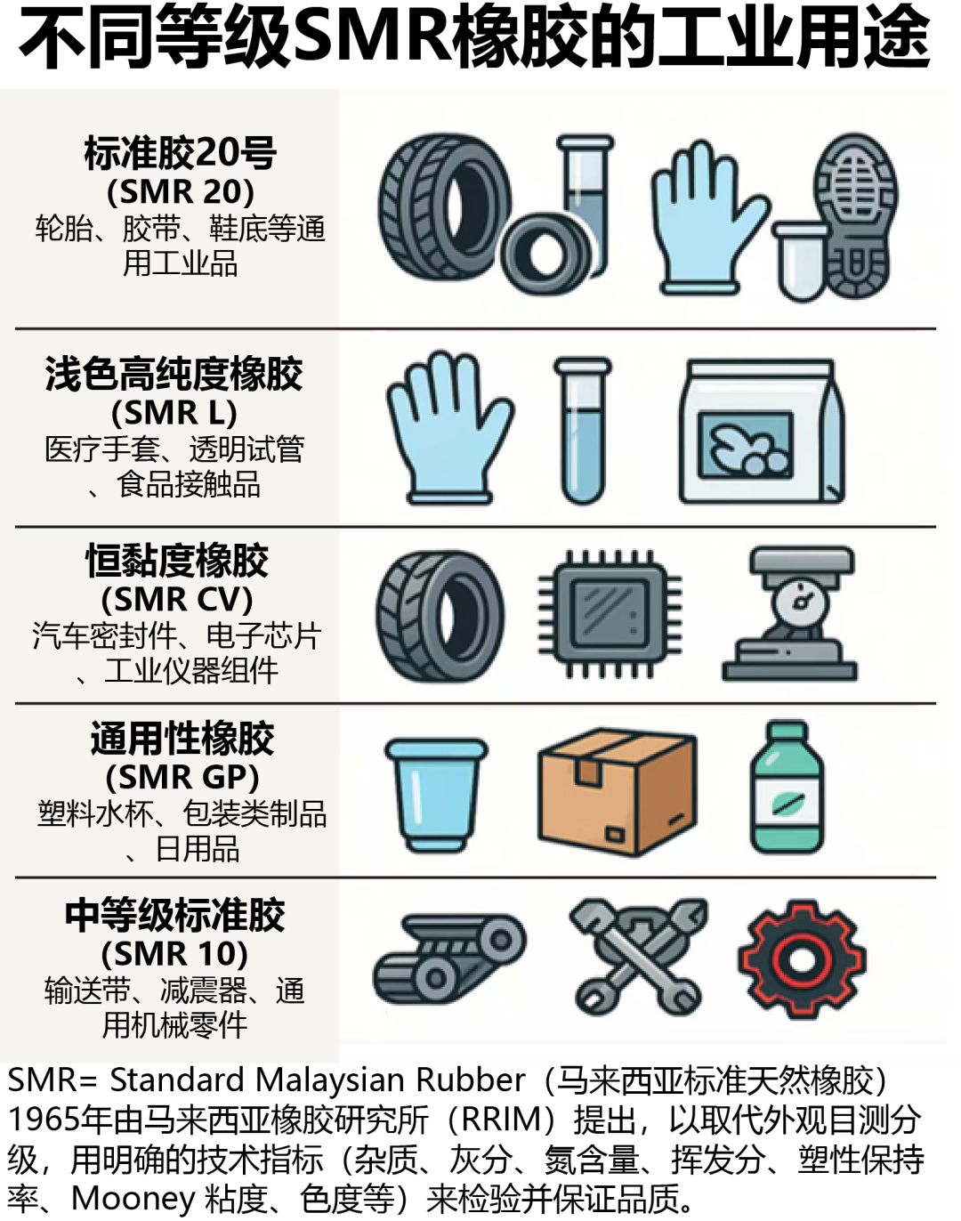 不同等级SMR橡胶的工业用途