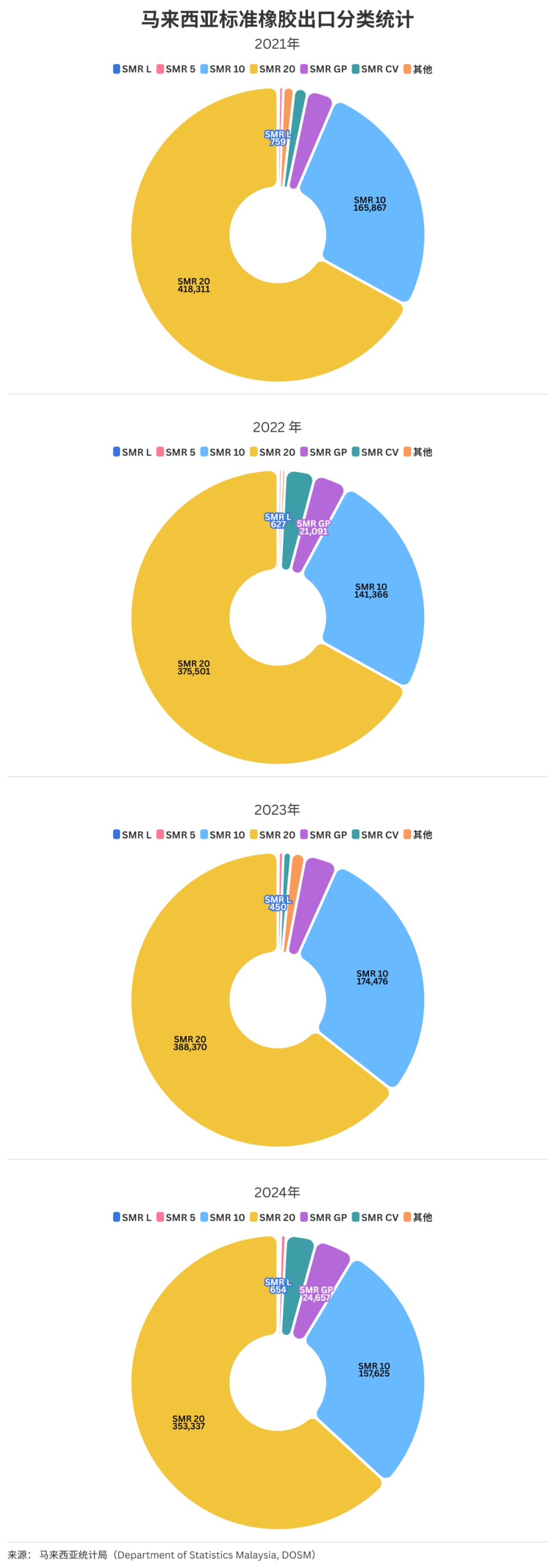 马来西亚近四年标准橡胶出口分类统计
