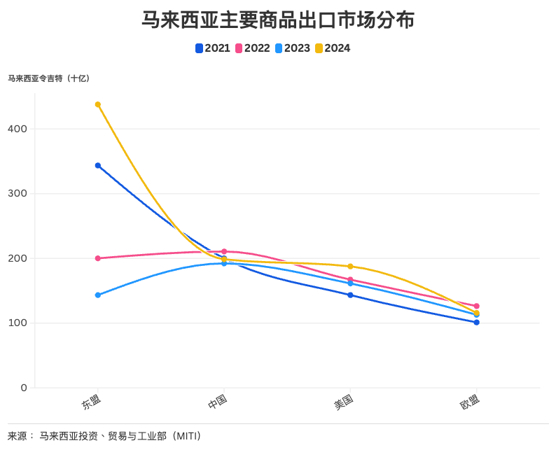 马来西亚主要商品出口市场分布(2021-2024)