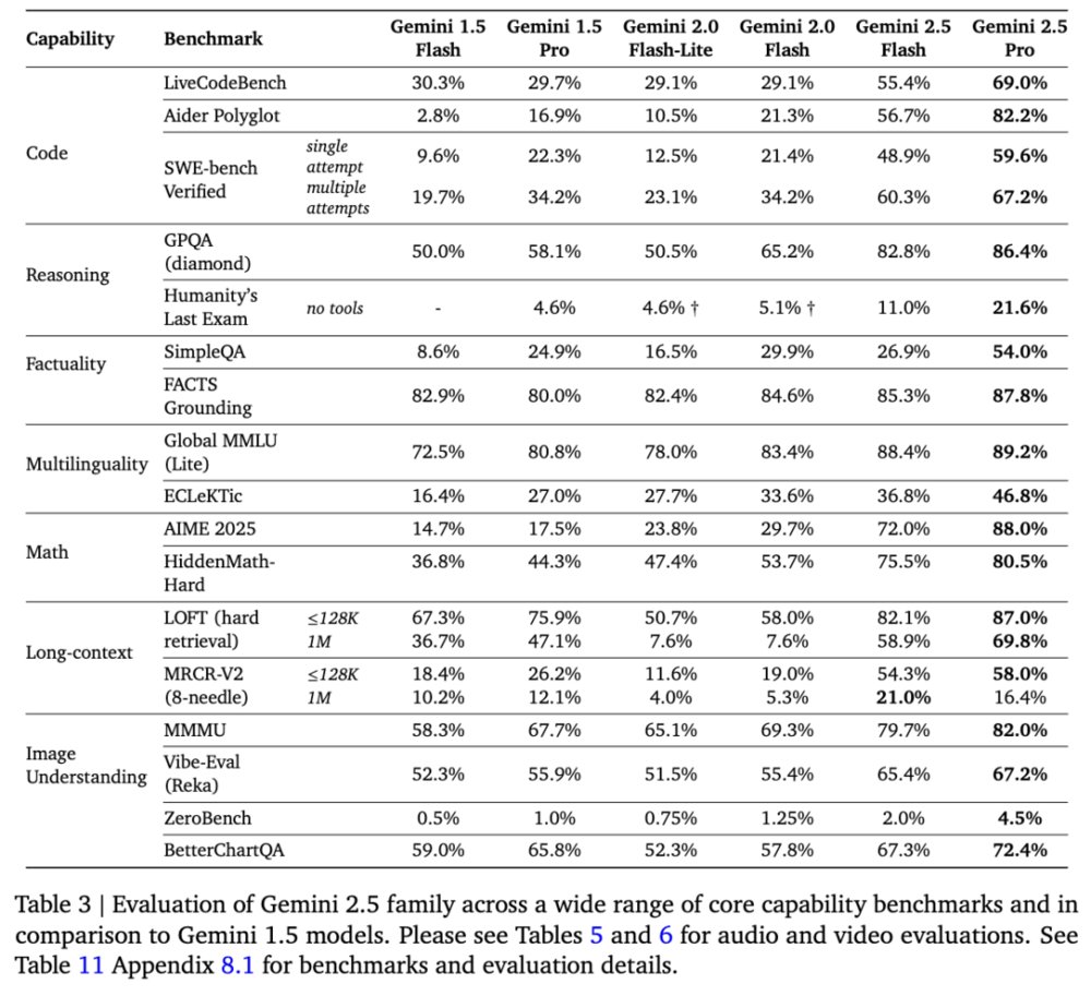 谷歌还一口气更新了Gemini 2.5系列模型技术报告,全面介绍了Gemini 2.X模型系列:包括Gemini 2.5 Pro和Gemini 2.5 Flash,以及Gemini 2.0 Flash和Flash-Lite模型。