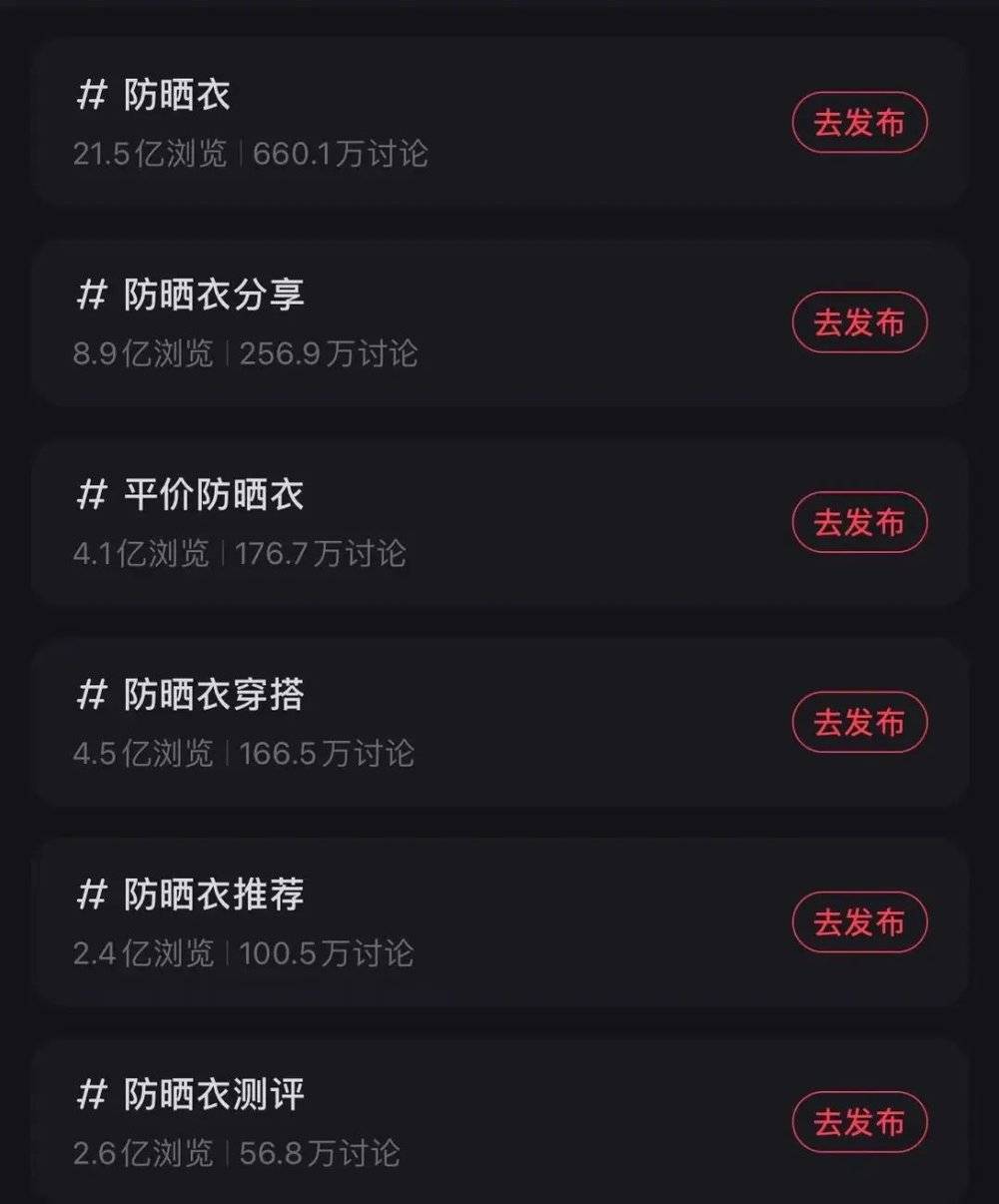 防晒衣在社交平台上拥有超高话题量。(图/小红书截图)