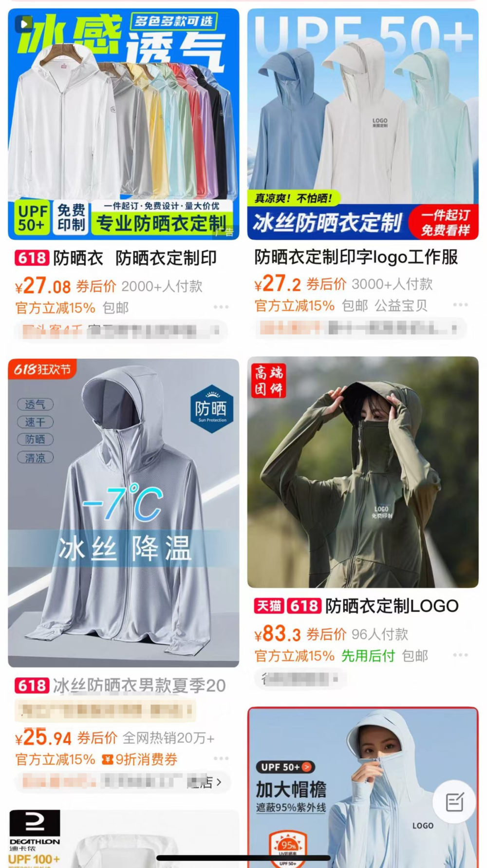 防晒衣的价格可以很低。(图/购物平台截图)