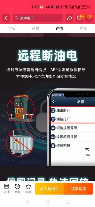 不过,记者在第三方购物平台上搜索“汽车远程断油”,就会跳出多款汽车GPS定位防盗器。