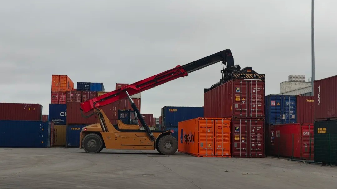 5月22日,《每日经济新闻》记者前往上海芦潮港,一家暂落箱堆场的老板告诉记者,在场的集装箱大约有170个正在等待进港,多为重箱,此时的箱量还比“对等关税”实施前少三分之一,60元、80元的落箱费是淡季报价,可以说干一天亏一天。