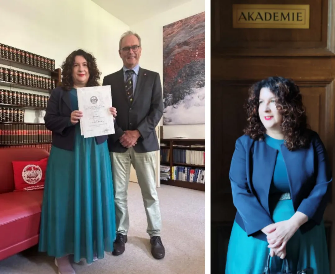 Eva(左)被哥廷根下萨克森科学院授予高斯讲座教授席位 | Eva Miranda供图