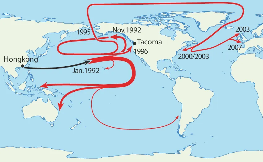 [2]对此话题感兴趣的读者可参看Moby-Duck:The True Story of 28,800 Bath Toys Lost at Sea。