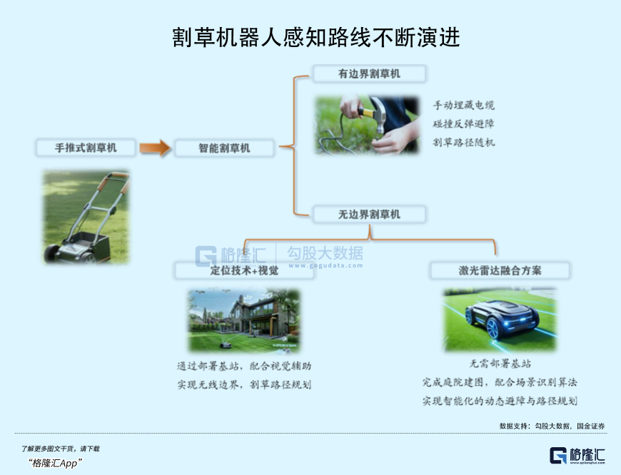 与扫地机类似,割草设备的迭代正在经历从人工操作到完全自动化的阶段。