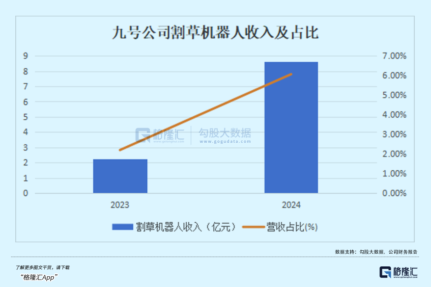 2021年9月,九号旗下未岚大陆发布了全球首款超超静音无边界智能割草机器人Navimow,采用RTK定位技术,实现行业重要突破。该业务营收近年保持着快速增长的势头。