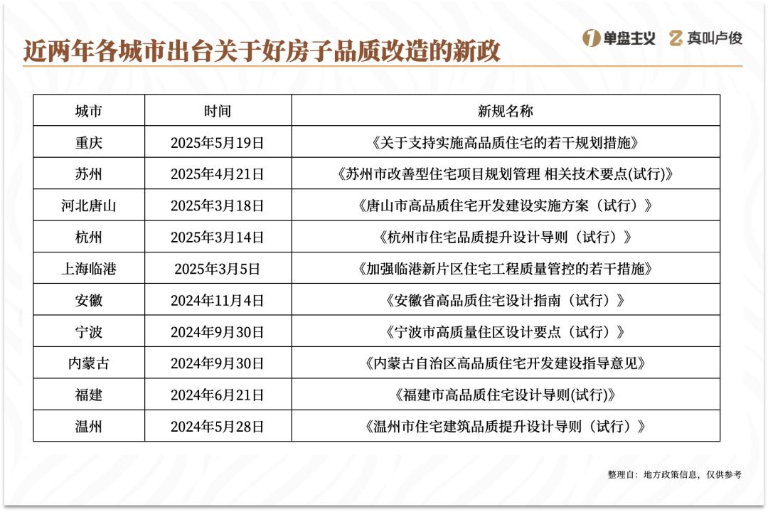 目的就是给大家梳理一下各城市关于好房子的标准和差异,如果说还有什么更多的,也希望给到当下地产行业一个思考: