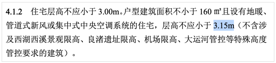 特意指出:设有户式中央空调和集中新风系统的住宅,福建层高不应低于3.10m,杭州不低于3.15m。