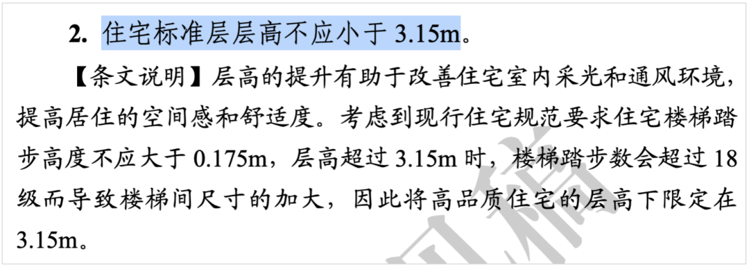 住宅标准层层高不应该小于3.15m,并且明确给到制定说明。