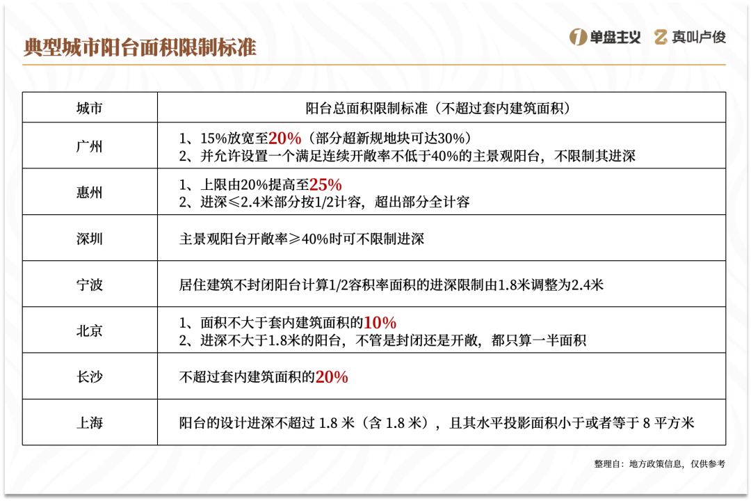 不久前我们统计过各城市阳台面积的扩大,比如广州上限从15%扩大到20%,最高惠州提升至25%。