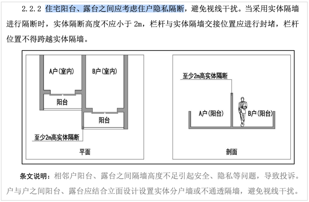 实体隔断高度不应小于2米,也是为了避免相邻阳台之间视线交错的尴尬。