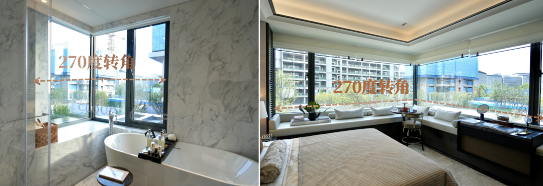 可以看到区别于整面承重墙的布局,而是在转角设立承重柱,结合飘窗从卫生间延续至主卧。