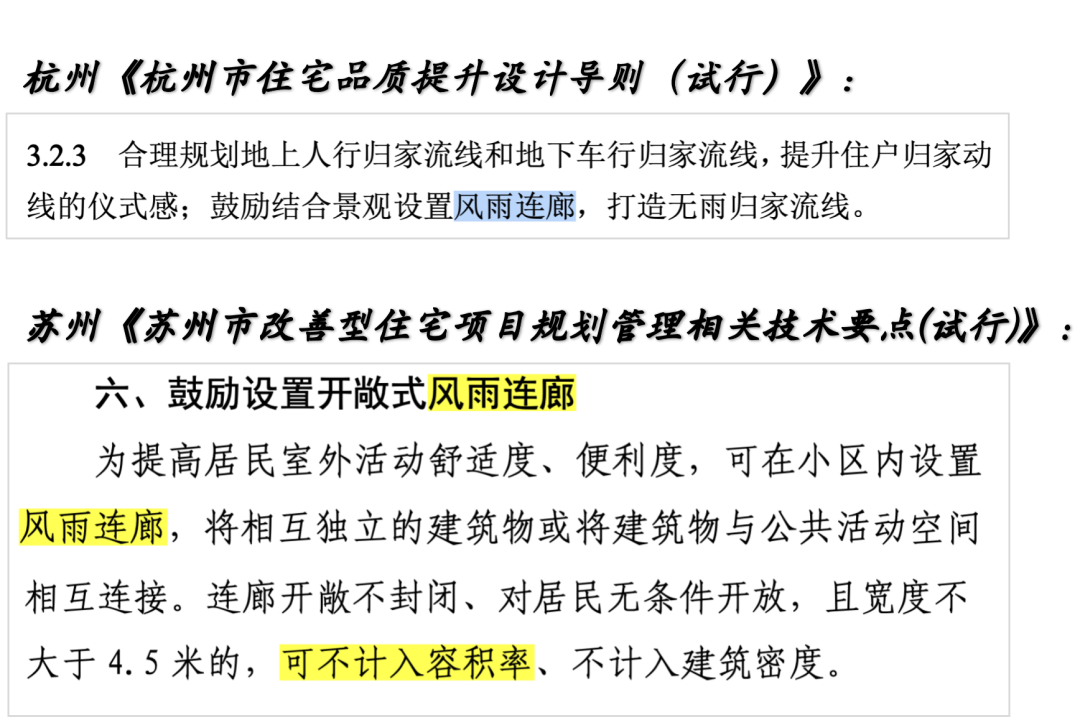 再比如风雨连廊。各位有多久没在行业见过风雨连廊了,而这种往往豪宅才能实现的设施如今也在大力被作为品质提升鼓励。