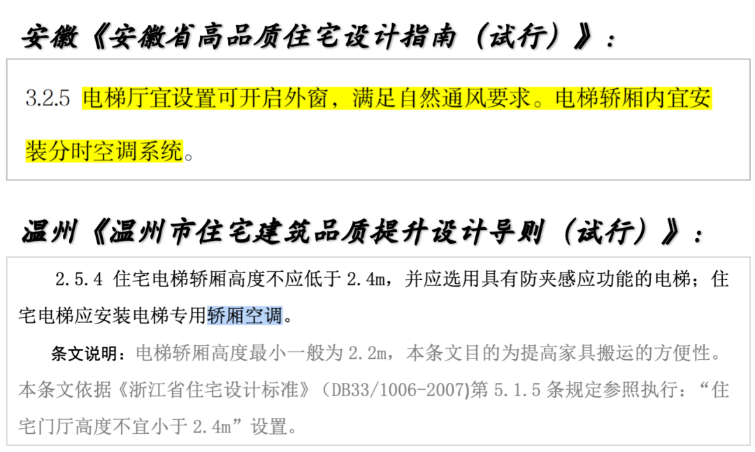 在安徽、温州都指出建议在电梯轿厢内安装空调。