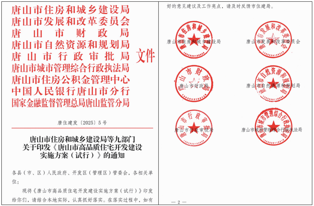 来源:《唐山市高品质住宅开发建设实施方案(试行)》