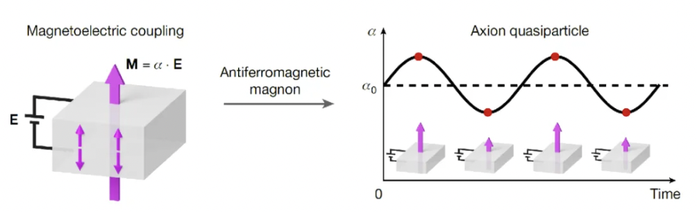 轴子如果作为一种准粒子的形式存在于固体之中,对应的材料应叫作“轴子绝缘体”。这类材料内部电子受到某种低对称性的保护,从而不具有宏观导电性,但具有较强的拓扑磁电响应。即施加电场时,会影响材料的磁性。