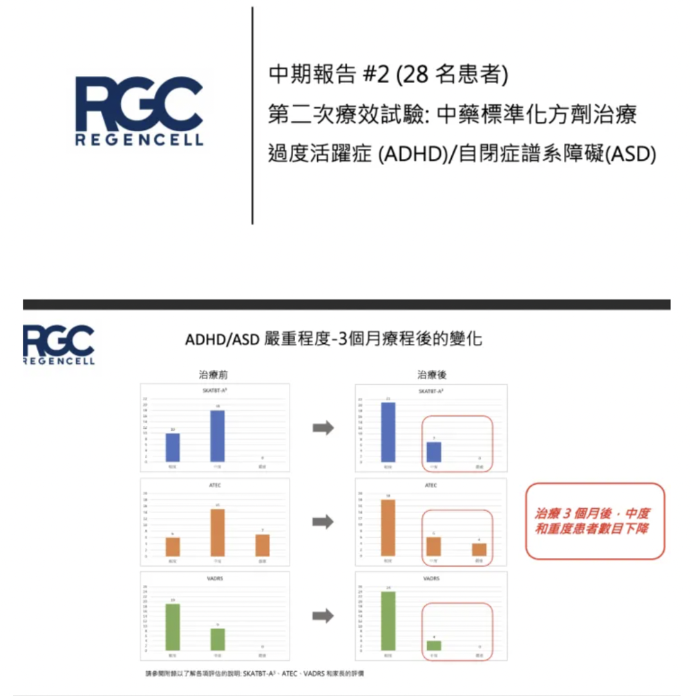 公司并未公布其临床情况,仅在2023年于官网公布的一项中期报告,用于评估其标准化中药配方对于治疗ADHD和ASD)有效性的临床试验:
