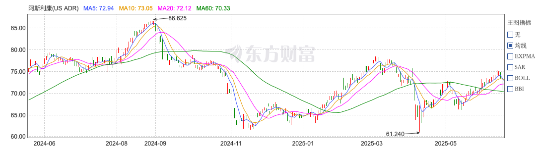 阿斯利康近一年股价走势情况。