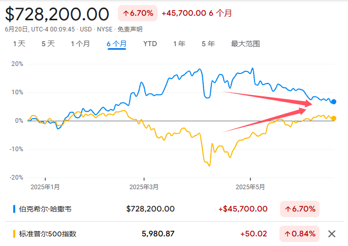 行情数据显示,自从5月3日巴菲特在伯克希尔年度股东会上透露,他将在今年年底卸任该公司首席执行官以来,伯克希尔A类股的股价已累计下跌了逾10%——这一跌幅与同期标普500指数强劲反弹的势头,形成了鲜明对比。