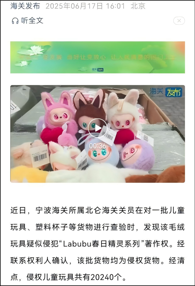 最近Labubu很火,为此海关发布几次“蹭”热度了。