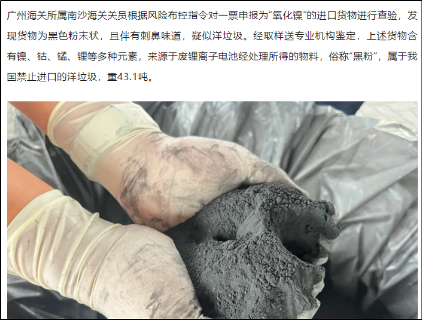 他们查获了一些洋垃圾,长成黑色粉末的样子。文章标题就叫:收拾黑粉。