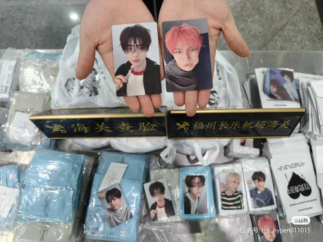 他们查到为赚取代工费的水客,携带了数量极多的明星照片入境,有2553张明星照片卡,明星照片盲盒718包,明星徽章222包。