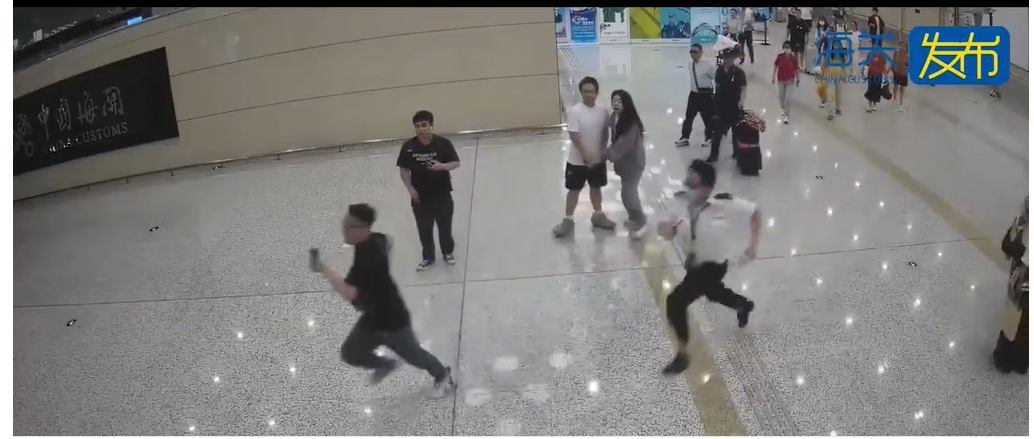 但如此枉法的你,还能逃到哪里去呢,没几秒后,被一众海关工作人员拦截,最后乖乖就范。
