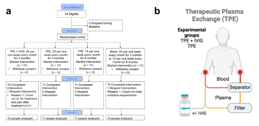 结果表明,长期 TPE 治疗是安全的,44 名参与者中只有 2 人因不良事件导致治疗中断,其中 1 例与静脉注射免疫球蛋白有关。