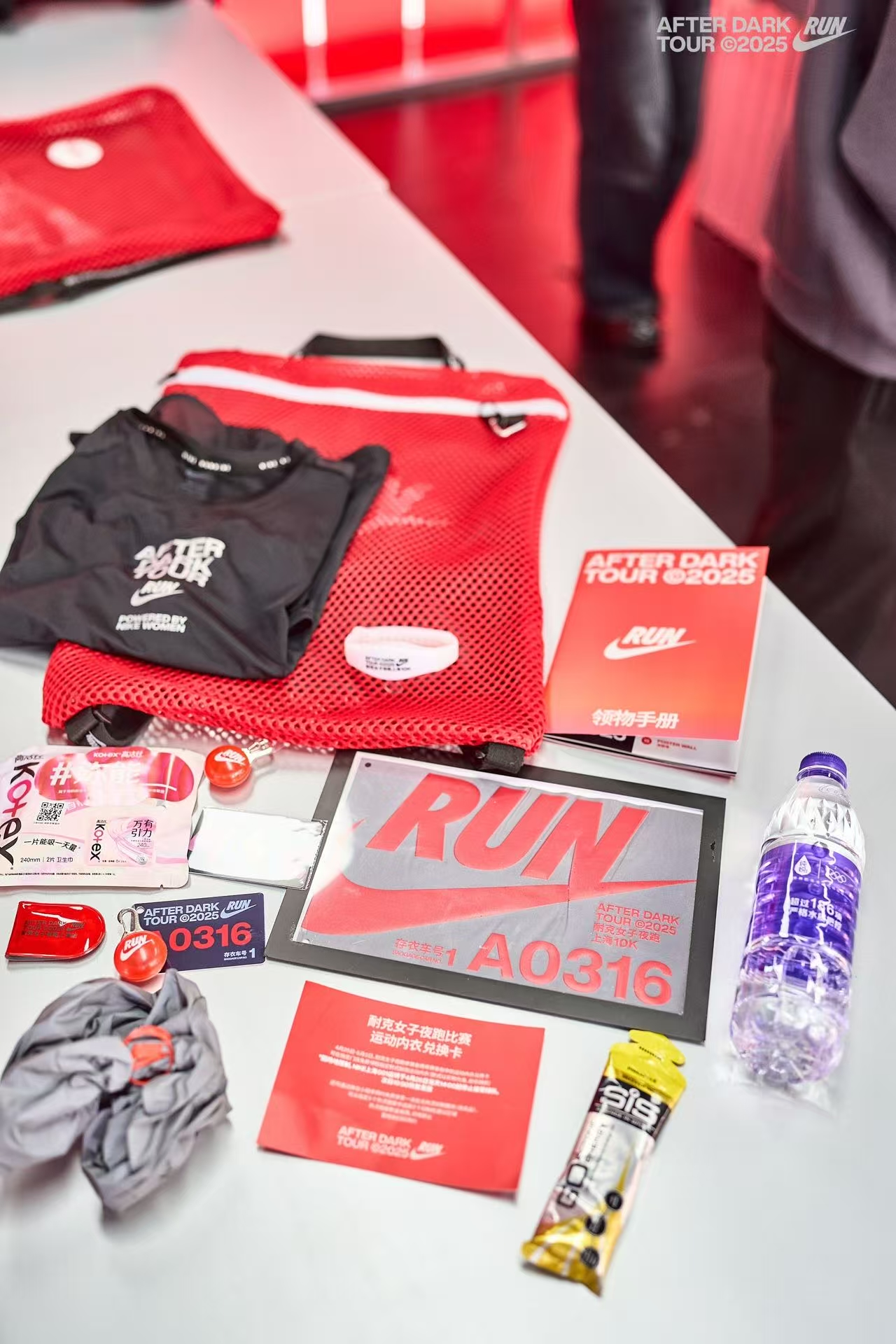 今年4月的一个夜晚,耐克举办了女子全球夜跑系列赛After Dark Tour上海站,创造了一场属于女性跑者的狂欢时刻。耐克在细节上做到极致,沿途提供安全、封闭的跑步环境;参赛包中除了常规的号码牌、跑步t恤,还提供了运动bra、防滑头绳、卫生巾、发光手环等女性夜跑实用的产品;比赛沿途的卫生间都配备了香氛和卫生巾;完赛物资、打卡装置和恢复按摩区域设备齐全,几乎满足了女性跑者的所有需求。
