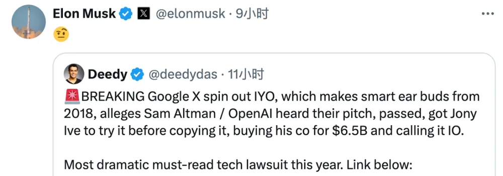 随着今天凌晨IYO公司的诉讼文书在社交媒体大肆传播,更多此前未被公开的细节也逐渐浮出水面,不仅引来一千万网友围观,连马斯克也在线吃瓜。