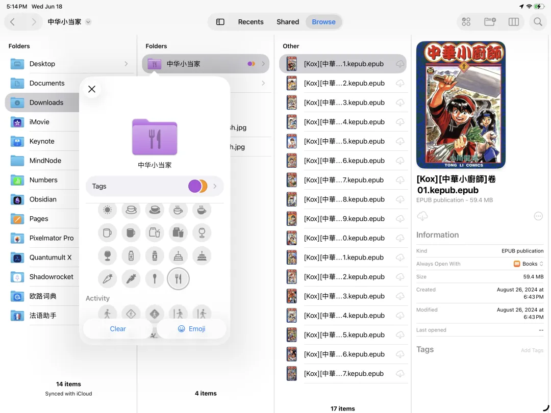 此外,iPadOS 26终于允许自定义文件夹的图标和颜色了,用户自己创建的文件夹也可以像系统文件那样拥有单独的emoji标识和特殊的颜色。不过文件夹的颜色并不能100%自定义,而是需要与用户设置的“标签”绑定: