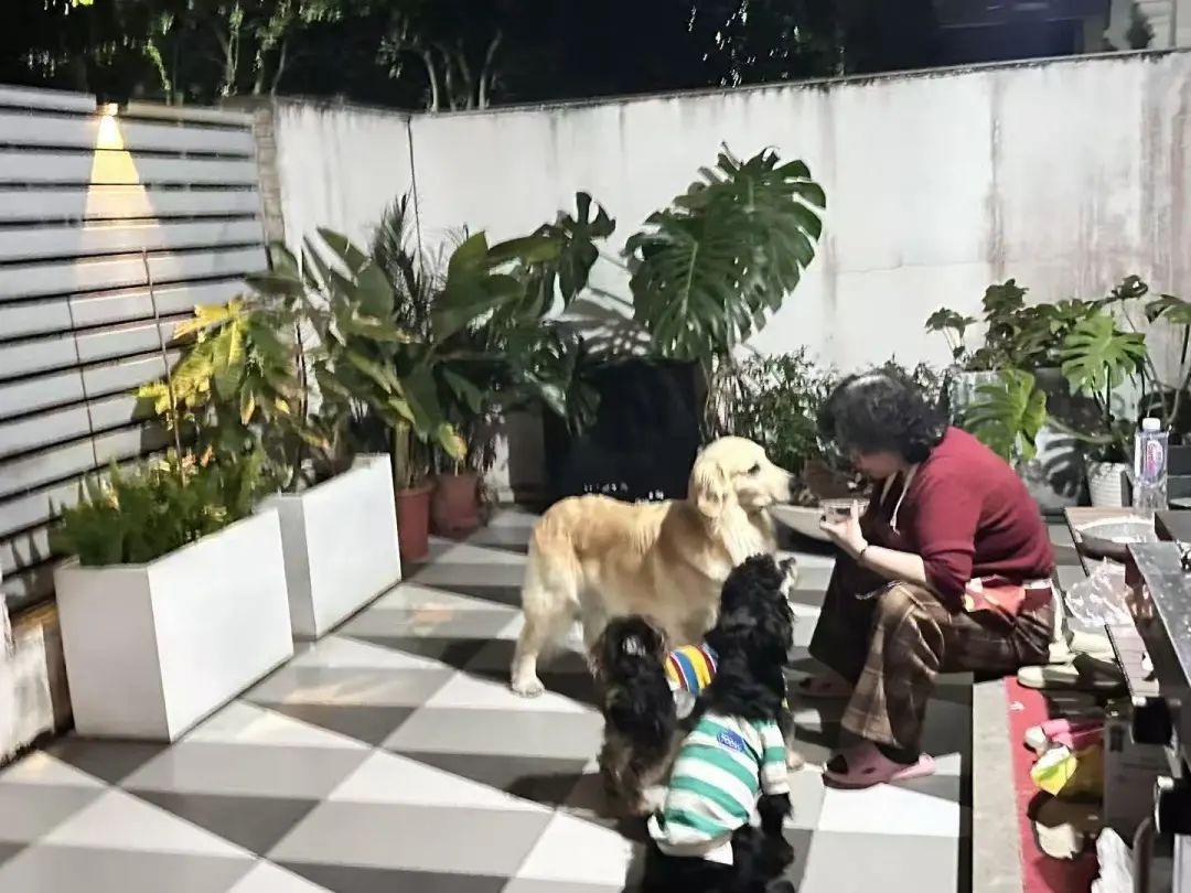 直到一次周末,她去了坪山朋友家做客。那是一栋老房子,院子里有草地、有秋千、有躺椅,朋友家的狗在边上跑来跑去,小猫在围墙上慵懒地晒太阳。