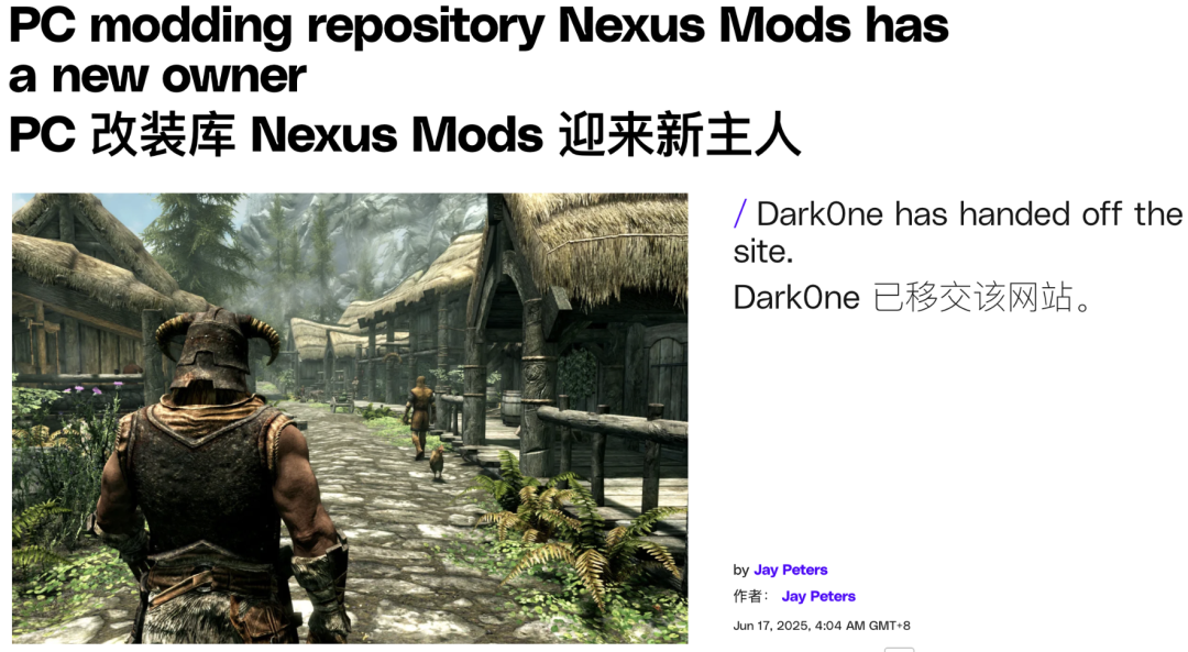 那就是他们下载MOD的那个平台Nexus(下称N网),在这段时间悄悄转移了所有权。