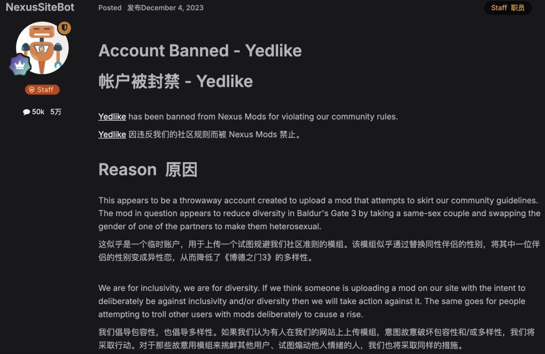 除了这件事,N网还在美国大选前禁过政治类MOD、推出了一个颇有争议的复杂捐赠系统、禁止作者删除已在网站发布的MOD。