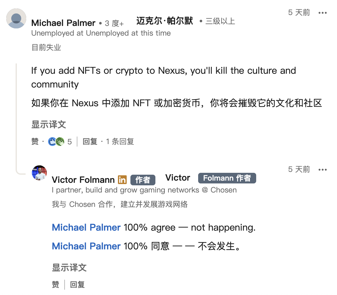 那个Foledinho(Victor)之前在领英发表过一段关于游戏初创公司盈利的言论,里面提到了微交易、Pay to Play、广告盈利、NFT等内容,这玩意但凡是个玩家看了都不爽。