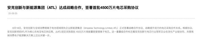 界面新闻获悉,事发后安克已更换了电芯供应商,换成另一家头部供应商ATL(新能源集团)。