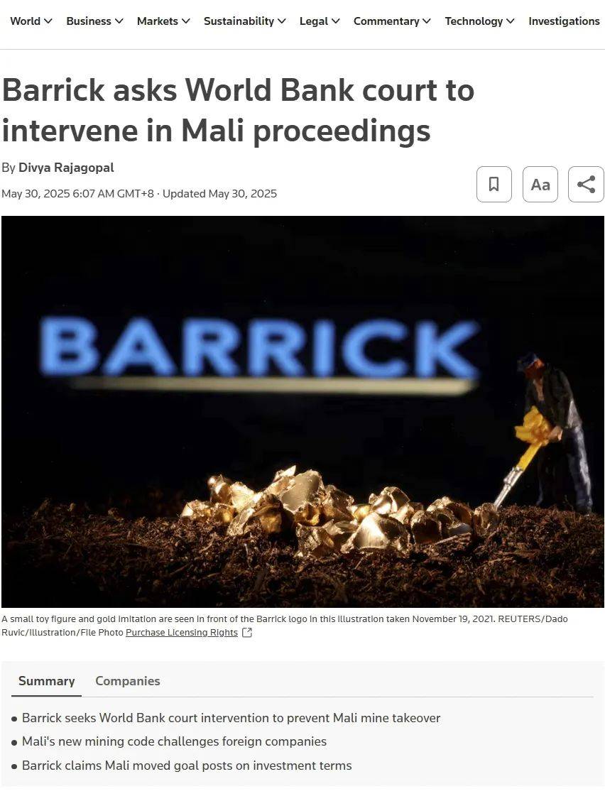 最新报道显示,巴里克正寻求世界银行仲裁,以保住自己的矿山。