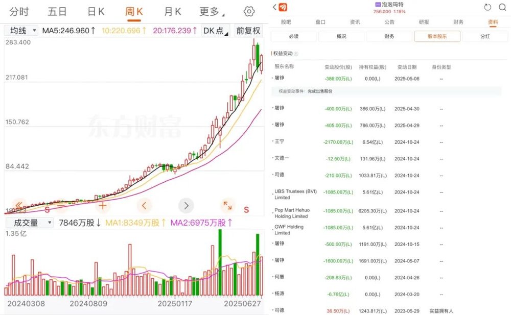 一年多里,Labubu一路高歌猛进,大股东们清一色减持套现。