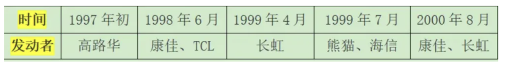 (1997-2000年彩电行业价格战发动者笔者根据公开资料整理)