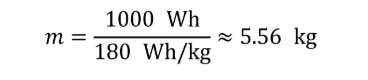也就是说,如果我们想要携带一个1度电能量的充电宝,那么一般其重量约为: