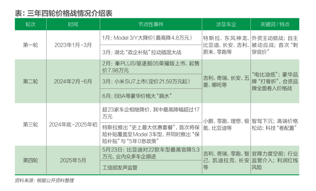 新能源汽车产业的价格战,从2022年特斯拉降价至今,三年打了四轮,仍未停歇。但中国汽车产业,却在一轮又一轮更加激烈的竞争中,做大规模并加速分化。