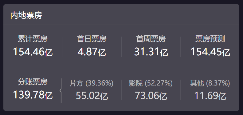 《哪吒2之魔童降世》的累计票房是154.46亿元。但实际上,到片方手上只有55.02亿元,换算过来只拿到了票房里的35.6%,三成多一点。
