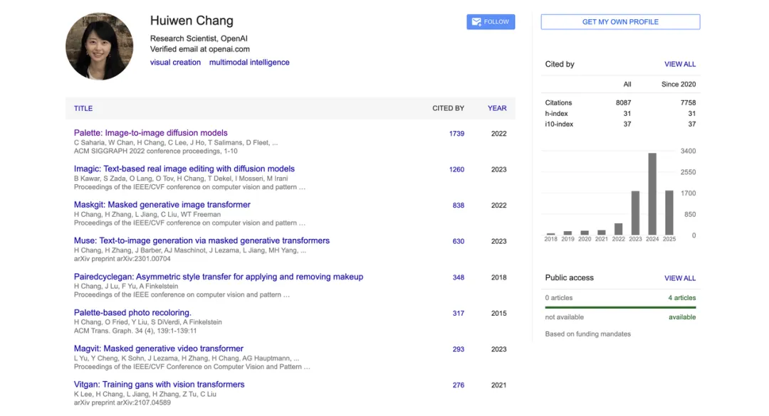 在加入OpenAI之前,她在Google担任高级研究科学家,累计工作超过六年,长期从事生成模型与计算机视觉研究,曾在Google Research发明MaskGIT和Muse文本生成图像架构。